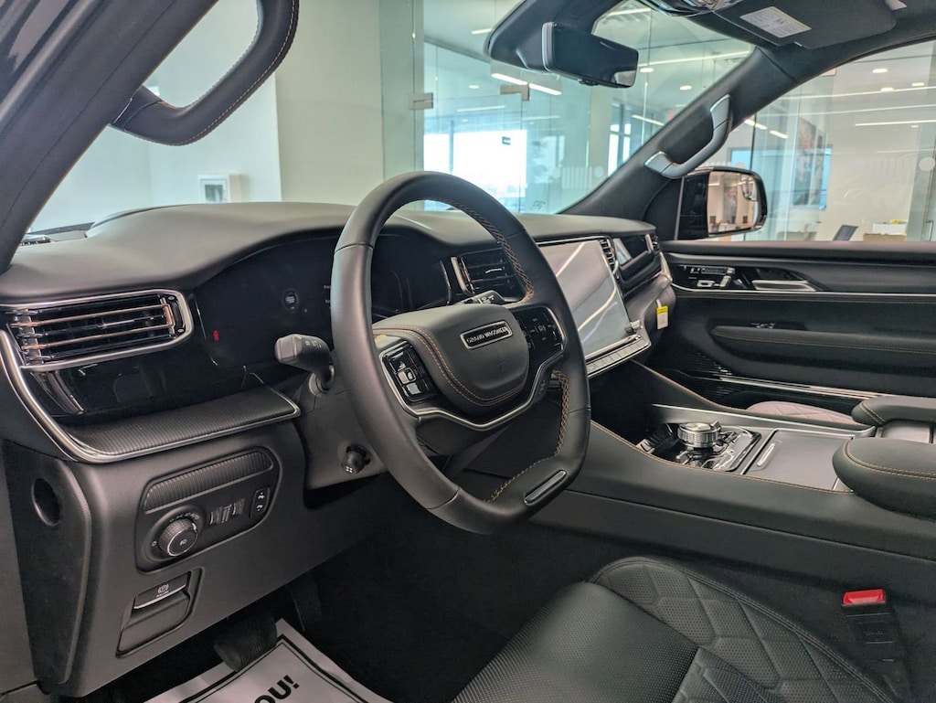 MOPAR INTERIOR PROTECTION PACKAGE -inc: All-Season Floor Mats, Cargo Tray, HD TRAILER TOW PACKAGE -inc: Removable Rear Tow Hook, Trailer Brake Control, Trailer Hitch Zoom, Heavy Duty Engine Cooling, Black Tow Hooks , GLOBAL BLACK, PREMIUM LEATHER TRIMMED BUCKET SEATS, FLEXIBLE SEATING GROUP -inc: 2nd Row Dual Charge-Only USB Ports, 8 Passenger Seating, 40/20/40 2nd Row Bench Power Tip/Slide, ENGINE: 3.0L I6 HURRICANE HO TWIN TURBO ESS (STD), DIAMOND BLACK CRYSTAL PEARLCOAT, BODY COLOR ROOF W/PXJ -inc: Monotone Paint Application, BODY COLOR ROOF -inc: Monotone Paint Application, Wheels: 22" x 9.0" Tinted Polished w/Black Insert, Wagoneer Connect Emergency Sos Capability.