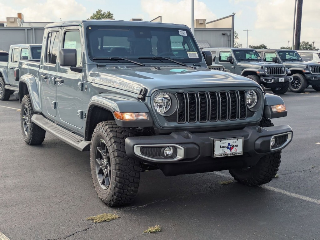 Scores 22 Highway MPG and 17 City MPG! This Jeep GLADIATOR delivers a Regular Unleaded V-6 3.6 L/220 engine powering this Automatic transmission. TRANSMISSION: 8-SPEED AUTOMATIC (850RE) (STD), SIDE STEPS, QUICK ORDER PACKAGE 24J TEXAS TRAIL -inc: Engine: 3.6L V6 24V VVT UPG I w/ESS, Transmission: 8-Speed Automatic (850RE), Leather Wrapped Shift Knob, Premium Door Trim Panel, Power 4-Way Passenger Lumbar Adjust, Power 4-Way Driver Lumbar Adjust, Body Color Fender Flares (2-Piece), Power Adjust 8-Way Front Passenger Seat, Integrated Radar Camera Module (IRCM), Security Alarm, Rear Armrest w/Cupholder Seat, Hard Seat Back, Advanced Brake Assist, Freedom Panel Storage Bag, Rear Window Defroster, Rear Sliding Window, Texas Trail, Automatic Headlamps, Deep Tint Sunscreen Windows, Full Speed Forward Collision Warning Plus, 97 MPH Vehicle Max Speed Calibration, Power Heated Mirrors, Daytime Running Lamp System, Power Adjust 8-Way Driver Seat, Full Length Floor Console Premium Armrest, Premium Wrapped Steering Wheel, Leather Wrapped Park Brake Handle, Sun Visors w/Illuminated Vanity Mirrors, Texas Trail Tailgate & Hood Decals.