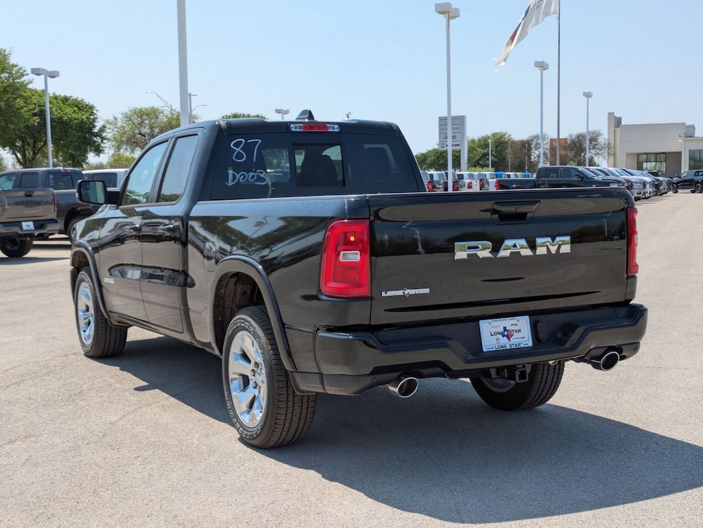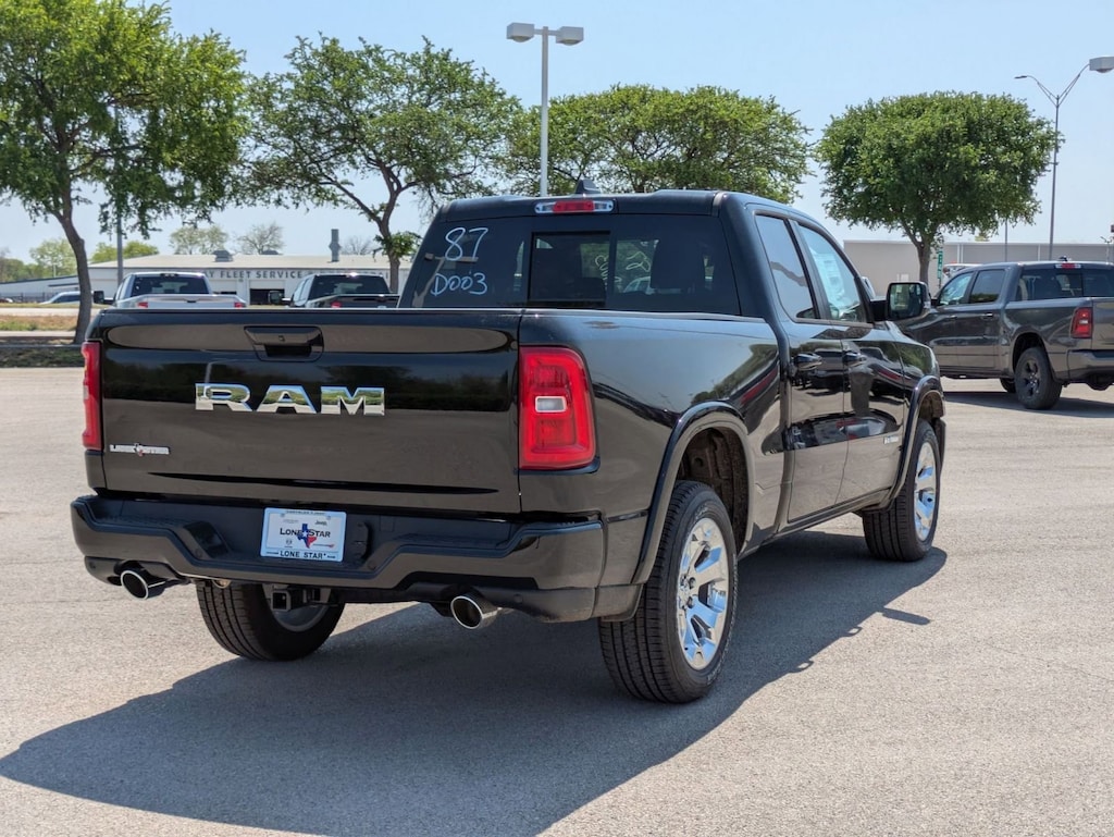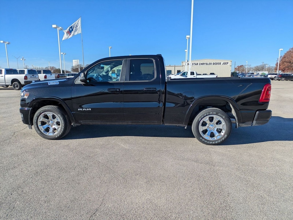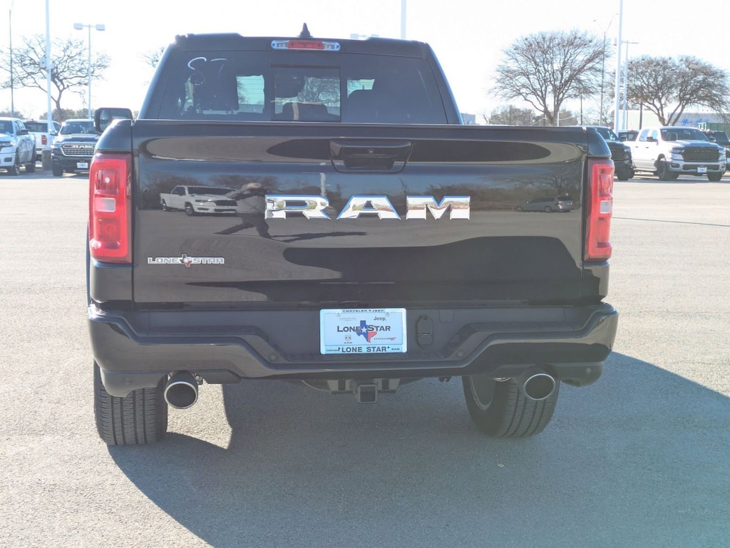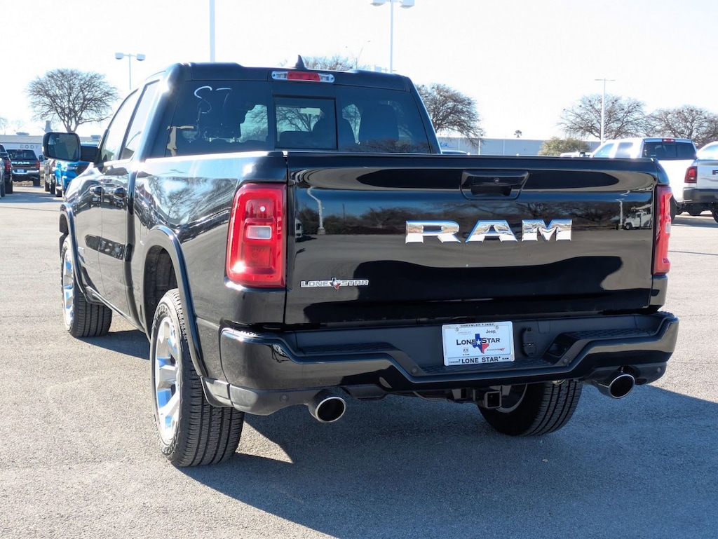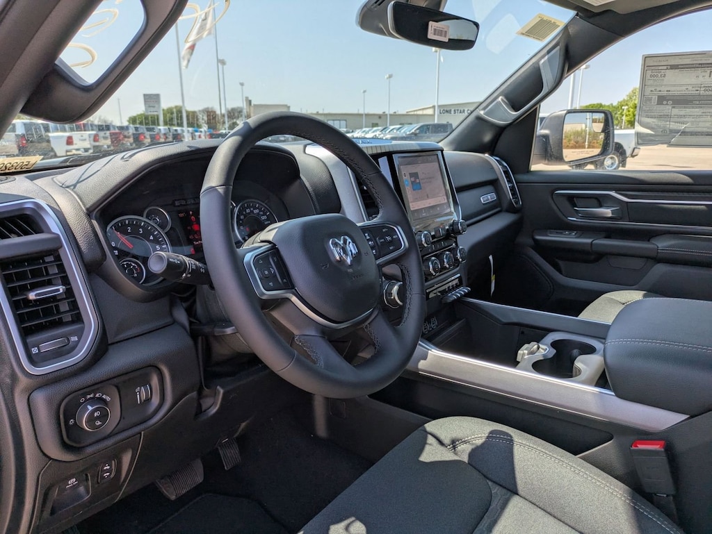 SPORT APPEARANCE PACKAGE -inc: Grille Surround 1 Body Color Texture 1 Black, Body Color Tailgate Handle, Black Interior Accents, Body Color Front Bumper, Body Color Door Handles, Body Color Rear Bumper w/Step Pads, QUICK ORDER PACKAGE 21R LONE STAR -inc: Engine: 3.0L I6 Hurricane SO Twin Turbo ESS, Transmission: 8-Speed Automatic (8HP75), Lone Star Badge , TIRES: 275/55R20 OWL ALL SEASON, GVWR: 6,900 LBS, FRONT LICENSE PLATE BRACKET, ENGINE: 3.0L I6 HURRICANE SO TWIN TURBO ESS -inc: Aux Battery, Secondary Active Grille Shutters, 700 Amp Maintenance Free Battery, Active Noise Control System, Supplier Part Tracking, Dual Rear Exhaust w/Bright Tips, Start-Stop Dual Battery System, GVWR: 6,900 lbs, Thermal Rear Axle, 230 Amp Alternator, 26 Gallon Fuel Tank, DIAMOND BLACK CRYSTAL PEARLCOAT, BLACK, DELUXE CLOTH BUCKET SEATS -inc: Bucket Seats, Full Length Floor Console, Power Adjust 8-Way Driver Seat, Power 2-Way Driver Lumbar Adjust, BIG HORN LEVEL 1 EQUIPMENT GROUP -inc: 400W Inverter, Rear Window Defroster, Rear View Auto Dim Mirror, Power Adjustable Pedals, Leather Wrapped Steering Wheel, Rear Power Sliding Window, Exterior Mirrors w/Supplemental Signals, Exterior Mirrors Courtesy Lamps, Glove Box Lamp, Auto Power-Folding Mirrors, Auto Dim Exterior Driver Mirror, 115V Auxiliary Power Outlet, Universal Garage Door Opener, Heated Front Seats, Heated Steering Wheel, Power Adjust 8-Way Driver Seat, Black Premium Power Mirrors, Sun Visors w/Illuminated Vanity Mirrors, Power 2-Way Driver Lumbar Adjust, ANTI-SPIN DIFFERENTIAL REAR AXLE.