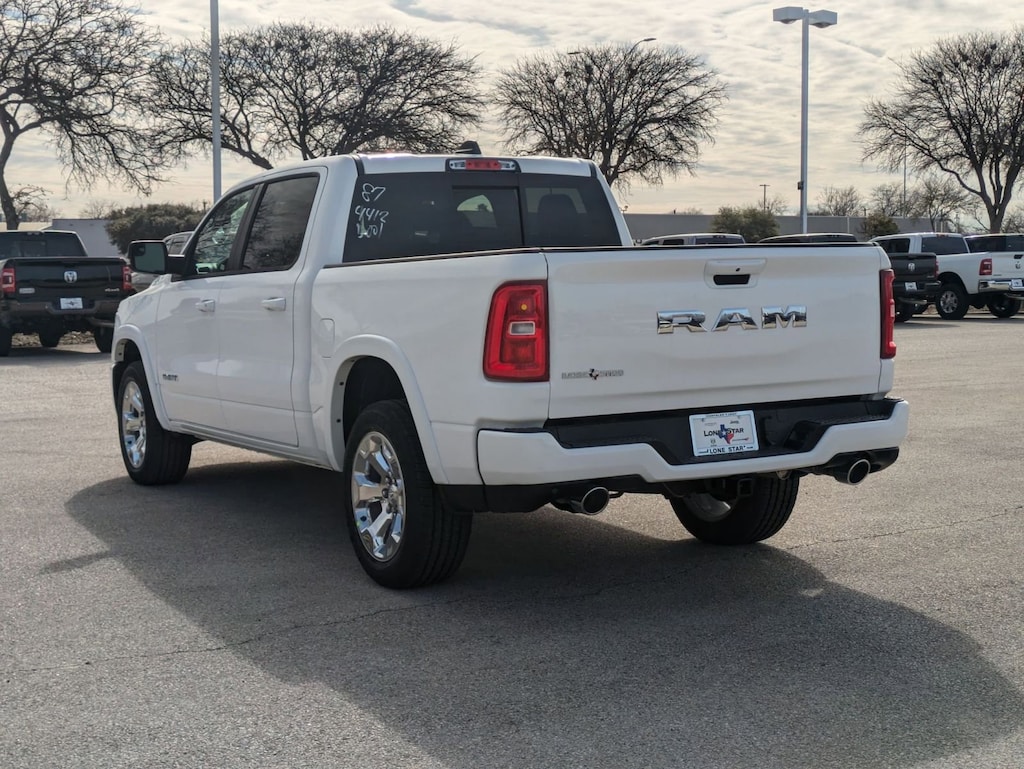 SPORT APPEARANCE PACKAGE -inc: Grille Surround 1 Body Color Texture 1 Black, Body Color Tailgate Handle, Black Interior Accents, Body Color Front Bumper, Body Color Door Handles, Body Color Rear Bumper w/Step Pads, QUICK ORDER PACKAGE 21R LONE STAR -inc: Engine: 3.0L I6 Hurricane SO Twin Turbo ESS, Transmission: 8-Speed Automatic (8HP75), Lone Star Badge , TIRES: 275/55R20 ALL SEASON LRR -inc: Nexen Brand Tires, MOPAR FRONT & REAR RUBBER FLOOR MATS, FRONT LICENSE PLATE BRACKET, ENGINE: 3.0L I6 HURRICANE SO TWIN TURBO ESS -inc: Aux Battery, Secondary Active Grille Shutters, 700 Amp Maintenance Free Battery, Active Noise Control System, Dual Rear Exhaust w/Bright Tips, Start-Stop Dual Battery System, Thermal Rear Axle, 230 Amp Alternator, BRIGHT WHITE CLEARCOAT, BLACK, DELUXE CLOTH BUCKET SEATS -inc: Bucket Seats, Full Length Floor Console, Power Adjust 8-Way Driver Seat, Power 2-Way Driver Lumbar Adjust, BIG HORN LEVEL 1 EQUIPMENT GROUP -inc: 400W Inverter, Rear Window Defroster, Rear View Auto Dim Mirror, Power Adjustable Pedals, Leather Wrapped Steering Wheel, Rear Power Sliding Window, Exterior Mirrors w/Supplemental Signals, Exterior Mirrors Courtesy Lamps, Glove Box Lamp, Auto Power-Folding Mirrors, Auto Dim Exterior Driver Mirror, 115V Auxiliary Power Outlet, Universal Garage Door Opener, Heated Front Seats, Heated Steering Wheel, Power Adjust 8-Way Driver Seat, 2nd Row In Floor Storage Bins, Black Premium Power Mirrors, Sun Visors w/Illuminated Vanity Mirrors, Power 2-Way Driver Lumbar Adjust, ANTI-SPIN DIFFERENTIAL REAR AXLE.