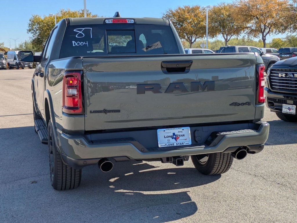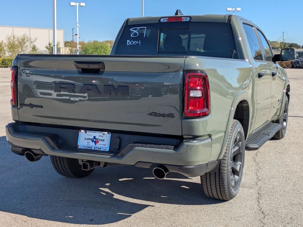 QUICK ORDER PACKAGE 27R LONE STAR -inc: Engine: 5.7L V8 HEMI MDS VVT eTorque, Transmission: 8-Speed Automatic (8HP75), Lone Star Badge , NIGHT EDITION -inc: Tires: 275/55R20 OWL All Season, Bridgestone Brand Tires, Accent Color Premium Power Mirrors, Exterior Mirrors w/Supplemental Signals, Black Headlamp Bezels, Exterior Mirrors Courtesy Lamps, Grille Black Surround Black Mesh, Auto Power-Folding Mirrors, Wheels: 20" x 9.0" Aluminum Painted Clad, Auto Dim Exterior Driver Mirror, Black Exterior Truck Badging, Anti-Spin Differential Rear Axle, Accent Color Door Handles, Accent Color Tailgate Handle, Black Interior Accents, Dual Exhaust w/Black Tips, Body Color Front Bumper, Body Color Rear Bumper w/Step Pads, Black Tail Lamp Bezels, RAM Grille Badge - Black, Black Painted Exterior Mirrors Caps, MOPAR FRONT & REAR RUBBER FLOOR MATS, MOPAR BLACK TUBULAR SIDE STEPS, ENGINE: 5.7L V8 HEMI MDS VVT ETORQUE -inc: Active Noise Control System, Heavy Duty Engine Cooling, Passive Tuned Mass Damper, GVWR: 7,100 lbs, Dual Rear Exhaust w/Bright Tips, G/T Exhaust, 18" Aluminum Spare Wheel, CANYON LAKE, BIG HORN LEVEL 2 EQUIPMENT GROUP -inc: SiriusXM Radio Service, Power Adjustable Pedals, Leather Wrapped Steering Wheel, 12" Touchscreen Display, Glove Box Lamp, Auto Power-Folding Mirrors, 115V Auxiliary Rear Power Outlet, Media Hub w/2 Charge Only USBs, Heated Front Seats, Security Alarm, Black Premium Power Mirrors, Premium Overhead Console, 9 Amplified Speakers w/Subwoofer, Disassociated Touchscreen Display, Body Color Fender Flares, Remote Tailgate Release, 115V Auxiliary Power Outlet, LED Dome Lamp w/On/Off Switch, Universal Garage Door Opener, 2nd Row In Floor Storage Bins, Sun Visors w/Illuminated Vanity Mirrors, LED Footwell Lighting, Rear Window Defroster, Rear View Auto Dim Mirror, Rear Power Sliding Window, GPS Navigation, Overhead LED Lamps, Wheels: 20" x 9" Aluminum Chrome Clad (WRK), Tires: 275/55R20 OWL All Season, Bridgestone Brand Tires, Auto Dim Exterior Driver Mirror, SiriusXM w/360L, Connected Travel & Traffic Services, Heated Steering Wheel, Configurable Drive Mod, 33 GALLON FUEL TANK, 3.92 REAR AXLE RATIO, Voice Recorder.