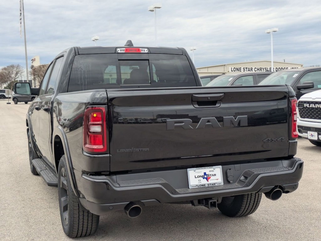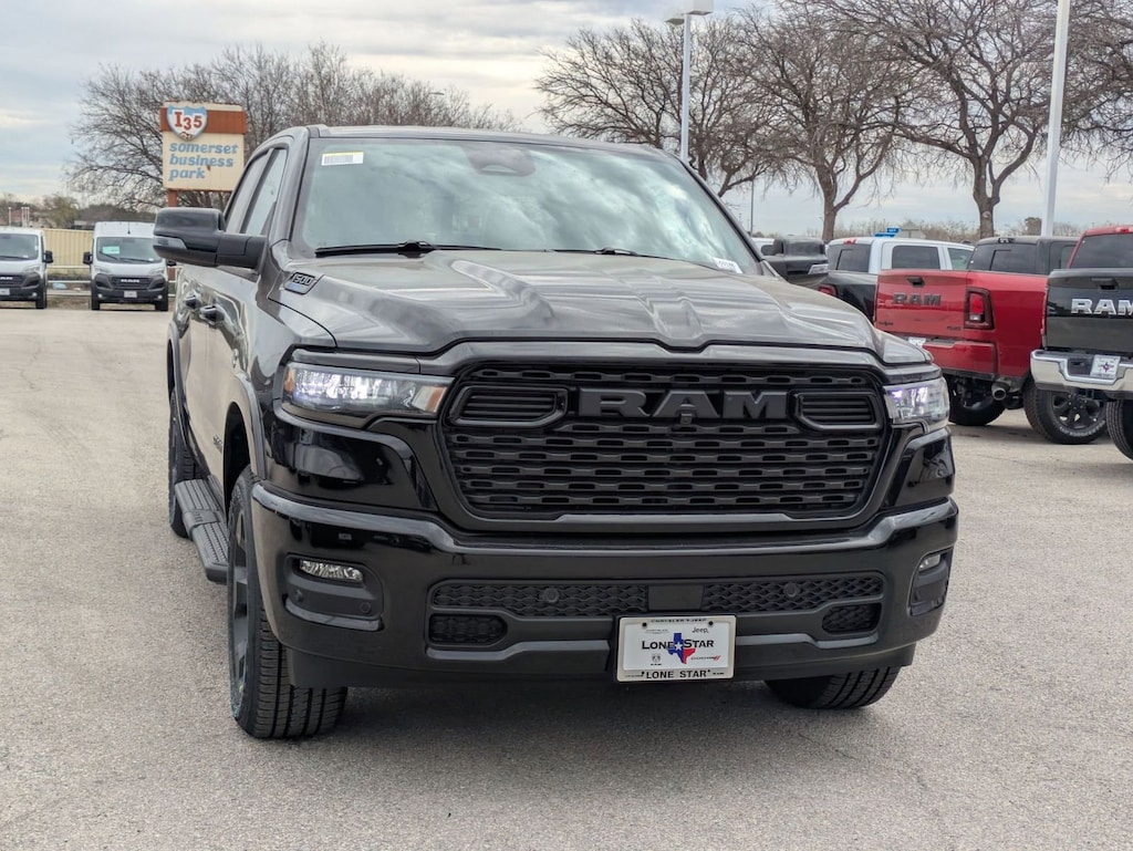 QUICK ORDER PACKAGE 27R LONE STAR -inc: Engine: 5.7L V8 HEMI MDS VVT eTorque, Transmission: 8-Speed Automatic (8HP75), Lone Star Badge , TIRES: 275/55R20 OWL ALL SEASON -inc: Bridgestone Brand Tires, REAR UNDERSEAT COMPARTMENT STORAGE, RADIO: UCONNECT 5 NAV W/12.0" DISPLAY, NIGHT EDITION -inc: Tires: 275/55R20 OWL All Season, Bridgestone Brand Tires, Accent Color Premium Power Mirrors, Exterior Mirrors w/Supplemental Signals, Black Headlamp Bezels, Exterior Mirrors Courtesy Lamps, Grille Black Surround Black Mesh, Auto Power-Folding Mirrors, Wheels: 20" x 9.0" Aluminum Painted Clad, Auto Dim Exterior Driver Mirror, Black Exterior Truck Badging, Anti-Spin Differential Rear Axle, Accent Color Door Handles, Accent Color Tailgate Handle, Black Interior Accents, Dual Exhaust w/Black Tips, Body Color Front Bumper, Body Color Rear Bumper w/Step Pads, Black Tail Lamp Bezels, RAM Grille Badge - Black, Black Painted Exterior Mirrors Caps, MOPAR FRONT & REAR RUBBER FLOOR MATS, MOPAR BLACK TUBULAR SIDE STEPS, GVWR: 7,100 LBS, FRONT LICENSE PLATE BRACKET, ENGINE: 5.7L V8 HEMI MDS VVT ETORQUE -inc: Active Noise Control System, Heavy Duty Engine Cooling, Passive Tuned Mass Damper, GVWR: 7,100 lbs, Dual Rear Exhaust w/Bright Tips, G/T Exhaust, 18" Aluminum Spare Wheel.