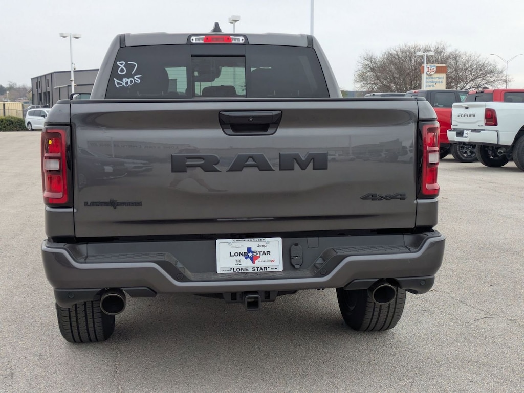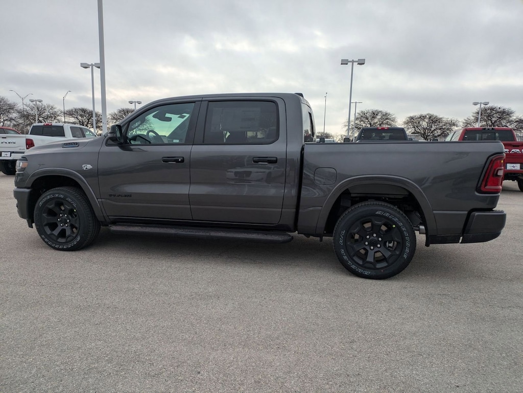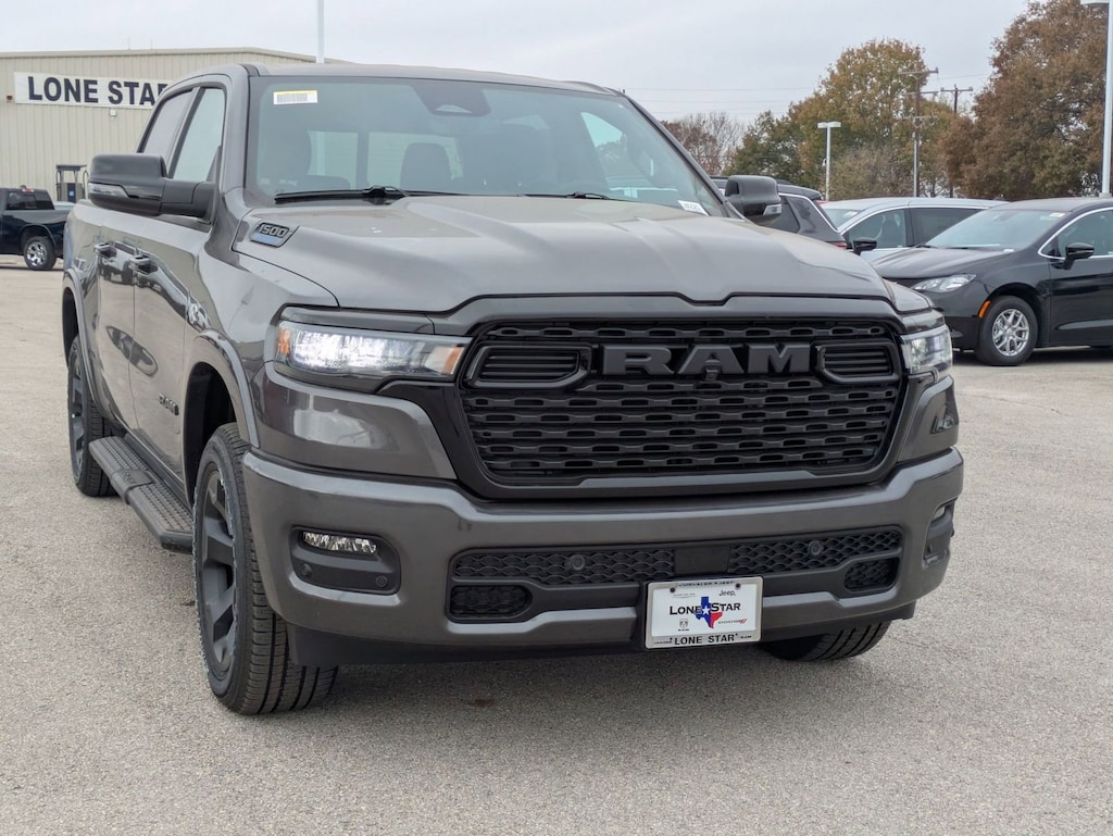 QUICK ORDER PACKAGE 27R LONE STAR -inc: Engine: 5.7L V8 HEMI MDS VVT eTorque, Transmission: 8-Speed Automatic (8HP75), Lone Star Badge , TIRES: 275/55R20 OWL ALL SEASON -inc: Bridgestone Brand Tires, REAR UNDERSEAT COMPARTMENT STORAGE, RADIO: UCONNECT 5 NAV W/12.0" DISPLAY, NIGHT EDITION -inc: Tires: 275/55R20 OWL All Season, Bridgestone Brand Tires, Accent Color Premium Power Mirrors, Exterior Mirrors w/Supplemental Signals, Black Headlamp Bezels, Exterior Mirrors Courtesy Lamps, Grille Black Surround Black Mesh, Auto Power-Folding Mirrors, Wheels: 20" x 9.0" Aluminum Painted Clad, Auto Dim Exterior Driver Mirror, Black Exterior Truck Badging, Anti-Spin Differential Rear Axle, Accent Color Door Handles, Accent Color Tailgate Handle, Black Interior Accents, Dual Exhaust w/Black Tips, Body Color Front Bumper, Body Color Rear Bumper w/Step Pads, Black Tail Lamp Bezels, RAM Grille Badge - Black, Black Painted Exterior Mirrors Caps, MOPAR FRONT & REAR RUBBER FLOOR MATS, MOPAR BLACK TUBULAR SIDE STEPS, GVWR: 7,100 LBS, GRANITE CRYSTAL METALLIC CLEARCOAT, FRONT LICENSE PLATE BRACKET.